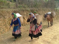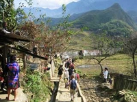 people are frequently seen on the main street of Sapa and small vendors along the street selling