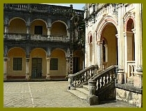 The castle covers an area of 4,000m? in which the main building occupies 420m?. In front of its arched doors are earthen banks. Occupying a pivotal position overlooking the Bac Ha valley, the castle serves both as the residence of Hoang Yen Chao, then Hoang A Tuong and as a fortress. Its network of walls, bunkers, and battlements were reinforced by a mortar mixed with sugar molasses. In a distance, the white castle jutting out from the valley looks imposing and majestic.